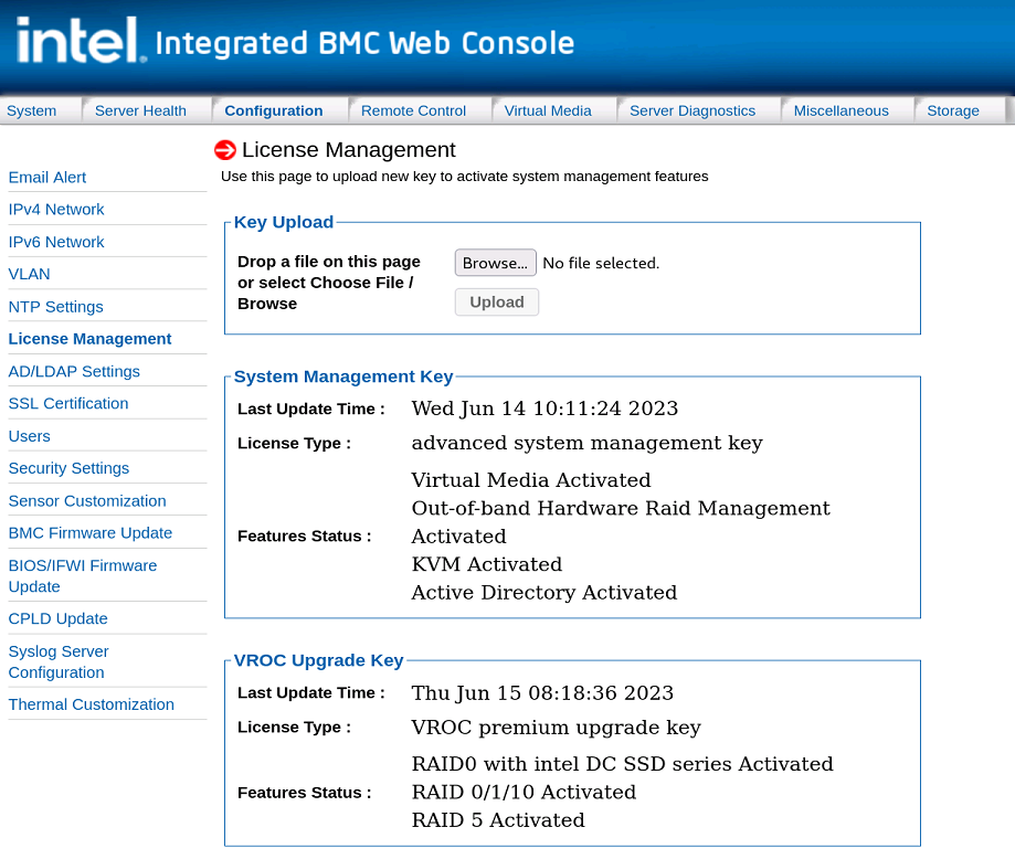 How To Activate Intel® Virtual RAID on CPU (Intel® VROC) License Key in the BMC on the Intel® Server M50FCP/D50DNP Family