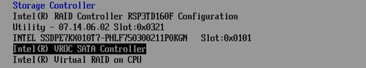 Scroll to the bottom of the screen and select the option Intel® VROC SATA Controller.