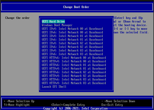 If this is a boot volume, navigate to the menu Boot Maintenance Manager and change the Boot Order menu.